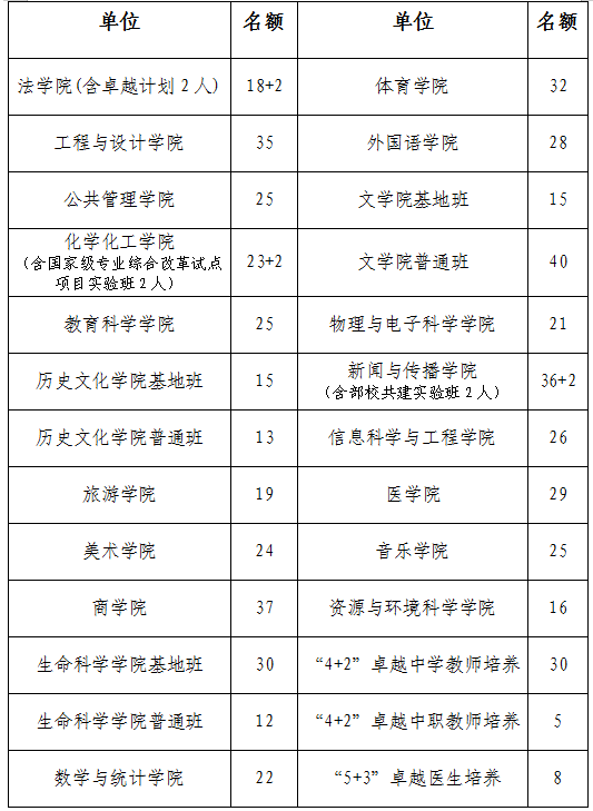 学校按照各学院2020届毕业生在籍人数及相关文件要求进行名额分配,具体如下。