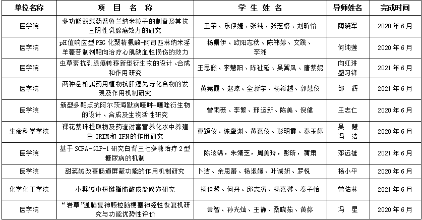 2019年湖南师范大学药学类大学生创新创业训练项目名单