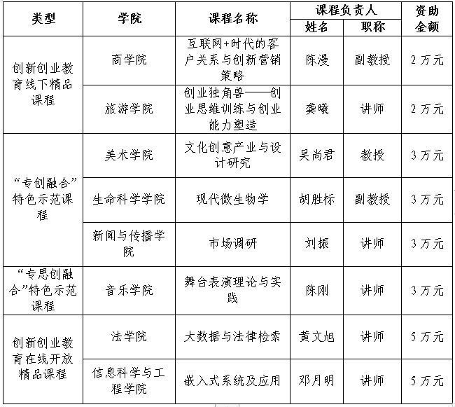 经个人申请,学院推荐,专家评审,学校决定立项建设《互联网+时代的客户关系与创新营销策略》等8门课程为2019年湖南师范大学创新创业教育精品课程(名单见附件),并给予相应经费资助。