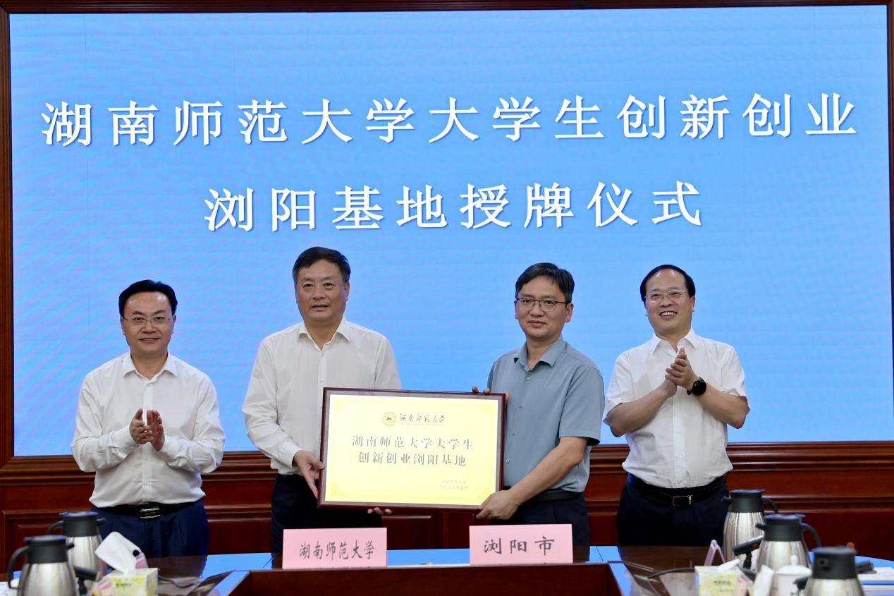 (记者 黄依依 洪通)5月28日,我校与浏阳市举行校地合作座谈会暨金阳科创城大学生创新创业基地授牌仪式。长沙市委常委、浏阳市委书记肖正波,我校校长、中国工程院院士刘仲华,副校长王辉出席。座谈会由浏阳市委副书记、统战部部长戴武明主持。