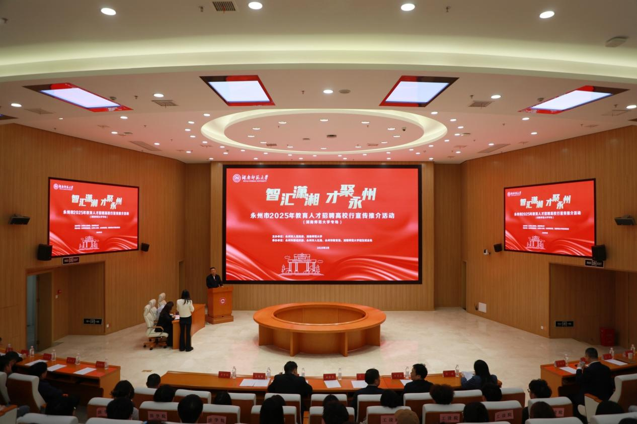 (记者 袁熠 宋晨)3月24日下午,永州市委副书记、市长陈爱林带队来校开展招才引智活动,宣讲会在图书馆报告厅举行。校长、中国工程院院士刘仲华,副校长王辉出席会议,会议由永州市副市长肖质彬主持。王辉对陈爱林一行的到来表示热烈欢迎与衷心感谢,对参加会议的学子表达真挚的祝福。他简要介绍了近年来我校学科发展与人才培养情况,期待未来双方加强合作,共同为永州发展贡献力量,实现校地共赢。永州市优秀人才代表、我校校...