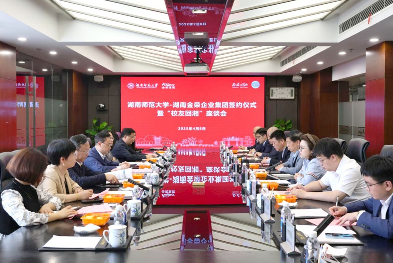 (供稿 科技处 记者 何子慧)4月8日,我校与湖南金荣企业集团有限公司签约仪式暨“校友回湘”座谈会举行。湖南金荣企业集团董事长李文金,我校校长、中国工程院院士刘仲华,副校长潘安练出席座谈会。李文金对刘仲华一行表示热烈欢迎。他简要介绍了集团的发展历程和业务情况,以及近年来与高等院校、科研机构在产学研合作上的举措和成果。他表示,希望双方以签约为新起点,在中试基地、成果转化、科创基金、校友回湘、大学生创新...